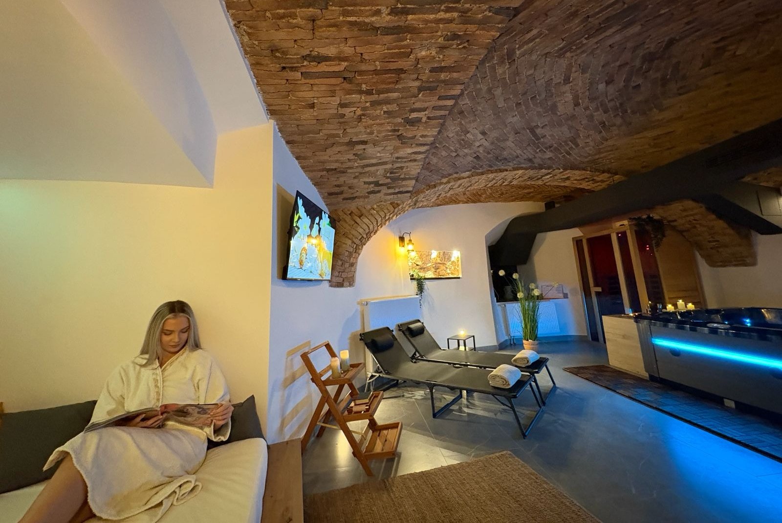 Experience a spa journey set within the historic atmosphere of a 15th-century tower, where the ancient city walls radiate a sense of calm, balance, and positive energy. Indulge in a mineral-rich hydromassage bath, infrared sauna, foot massage device, and a luxurious relaxation area, all accompanied by soothing music.